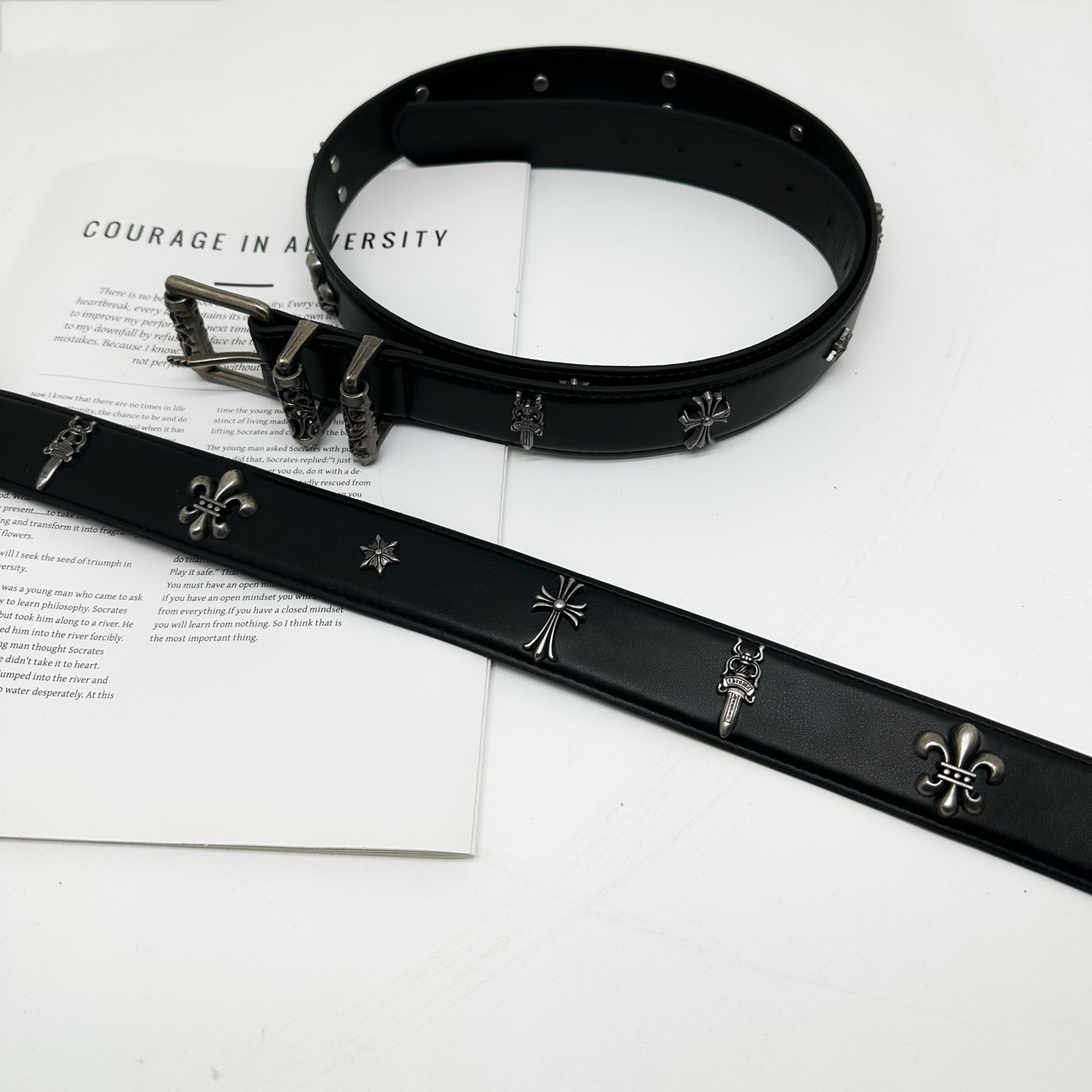 Leather Belt With Cross Detailing